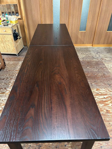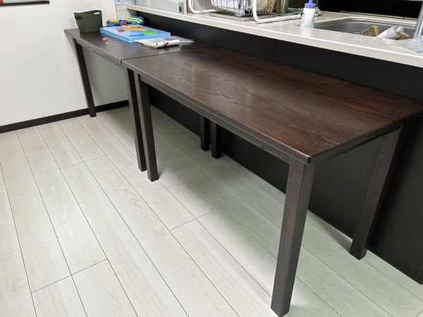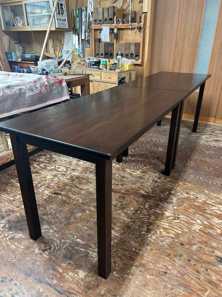![]() 机の奥行きは600ミリとやや小さめです。 塗装仕上げは、着色ウレタン塗装です。 |