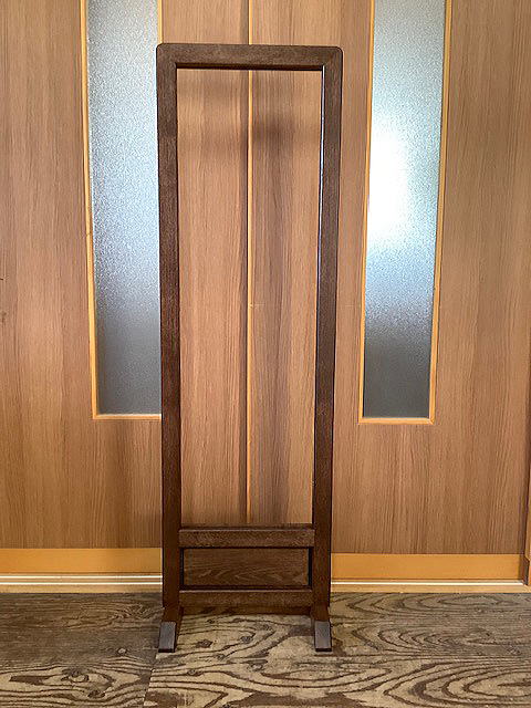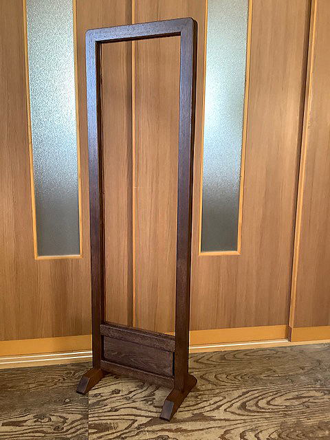 ![]() 左の額には縦横500mm、右の額には幅300mm高さ400mmのステンドグラスが入ります。 こちらの脚も取はずし可能となっています。 お届け先が遠方のため、サイズやガラスの納め方など メールや電話で打ち合わせを重ね、製作いたしました。 色も額に合わせて変えています。 |