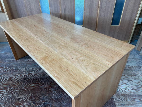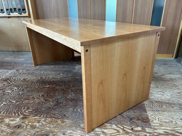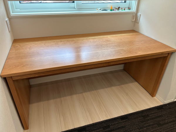 ![]() チェリーの机のご注文をいただきました。 幅1700ミリ、奥行き800ミリ、高さは715ミリ 脚のパネル以外はすべてチェリーの無垢材を使用して、 脚はチェリー突き板を使っています。 塗装は、透明ウレタン塗装で仕上げました。 |