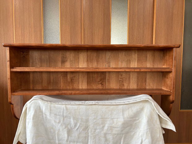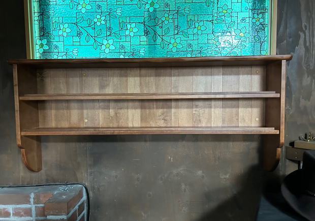 棚板にはカップの転落を防ぐための桟を取付けています。