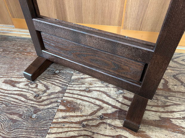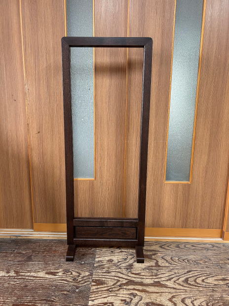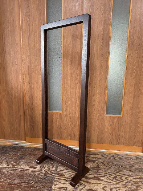 | お客様が制作されたステンドグラスを飾るための衝立タイプの額の ご注文をいただき、製作いたしました。 幅500ミリ、脚の奥行き240ミリ、高さは1300ミリと 設置される場所に合わせて製作しました。 |