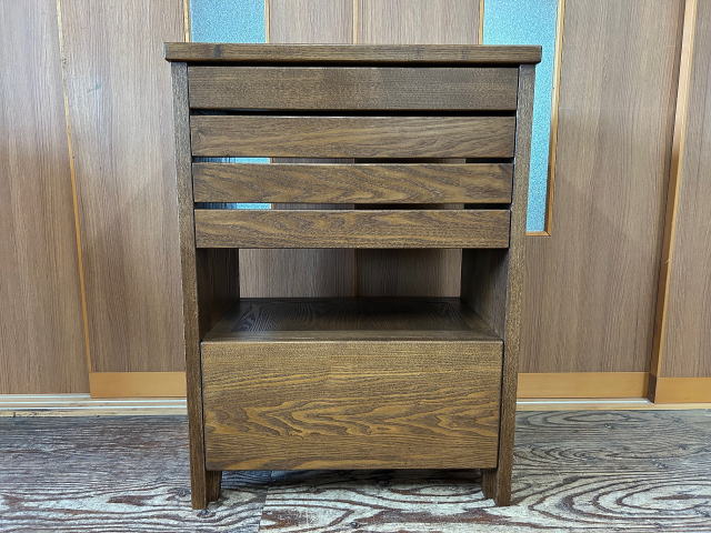 ![]() サイドテーブルのご注文をいただきました。 幅550ミリ、奥行き350ミリ、高さが740ミリです。 タモ材を使い着色ウレタン塗装で仕上げました。 |